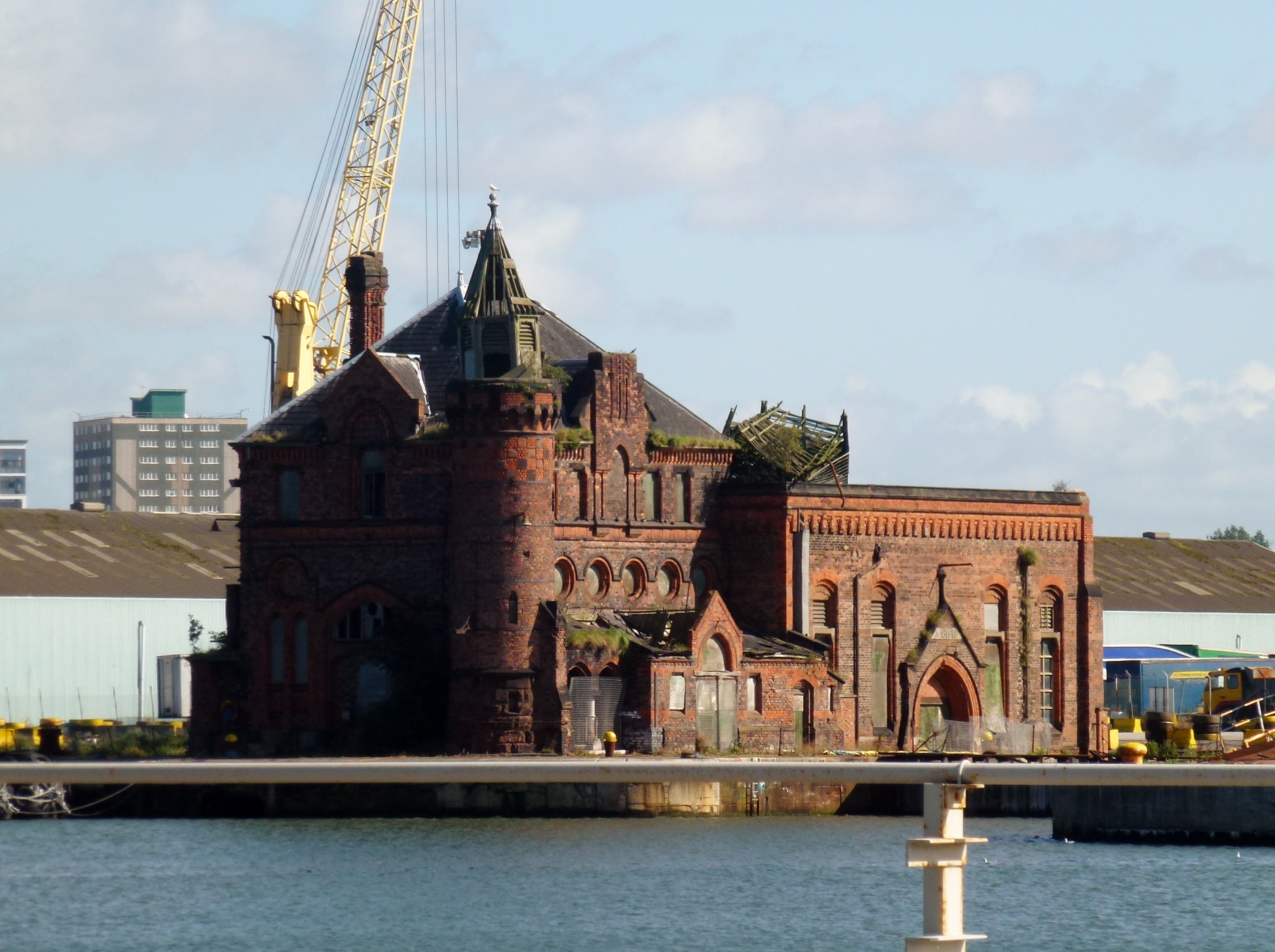 This ornate redbrick building once played a significant role in the local economy, housing the steam engine to operate the locks at Langton Dock. Later on, as shipping declined, the dock was left to languish and the pumphouse gradually deteriorated, but, thanks to its remote location, is has largely evaded vandals and arsonists. The pumphouse is certainly saveable and should be regarded, like many buildings on the docks, as a valuable example of Britain’s seafaring history as well as a dramatic piece of architecture. The port owners should look to repair this impressive building and, if no action is taken in the near future, the local council should ensure that the work is carried out. It could, perhaps, find a new role as a unique and striking dock office.