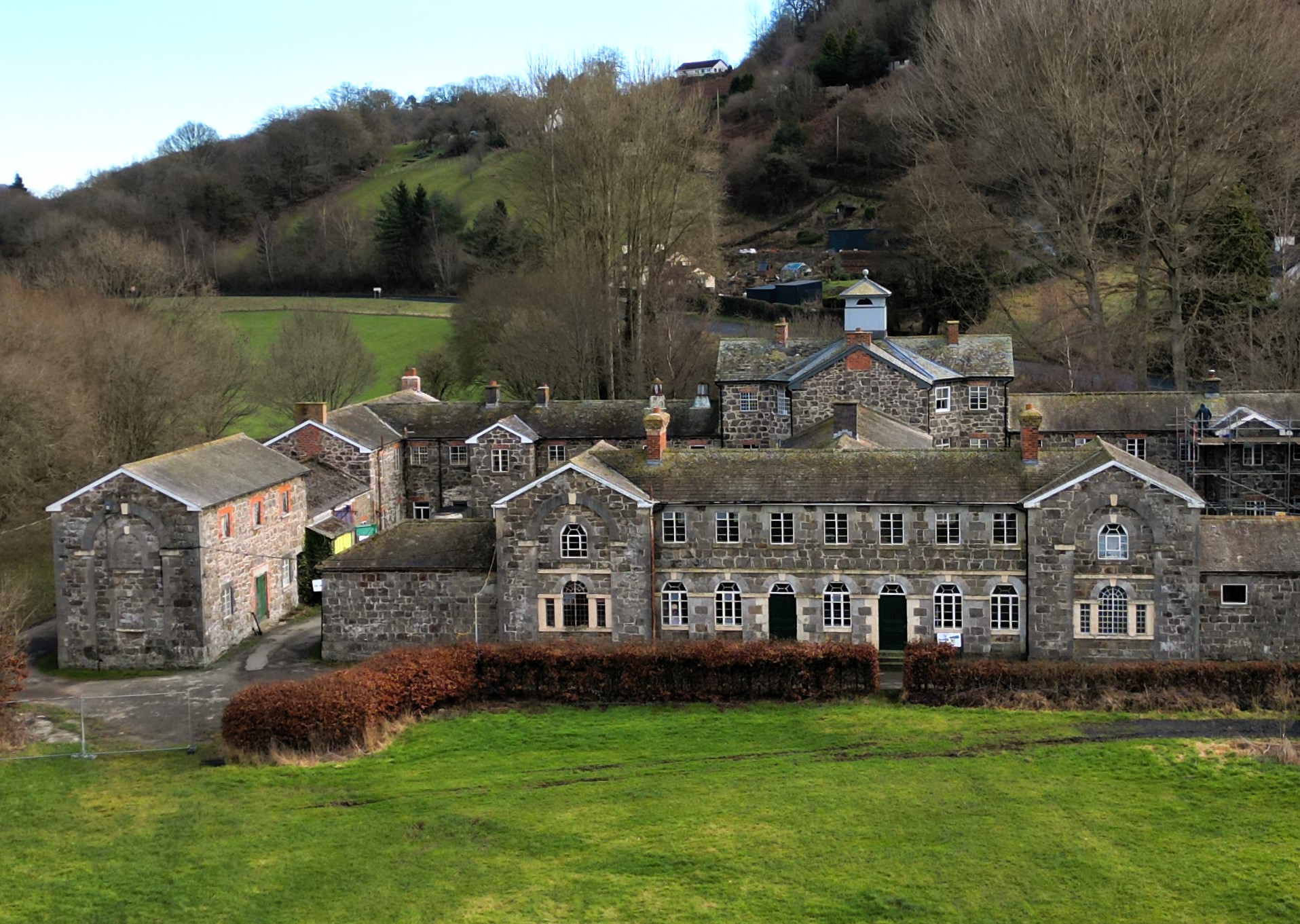 The former Llanfyllin Union Workhouse, known locally as ‘Y Dolydd’, was built by the Montgomeryshire County Surveyor, Thomas Penson, in 1838. An ambitious and well-executed work in the Classical tradition, the building is one of the most architecturally significant workhouses in Wales. It is also considered the finest surviving example of a workhouse built under the New Poor Law Act of 1834, and is noted for its expressive use of a plan form popular in workhouse building from 1834 onwards.