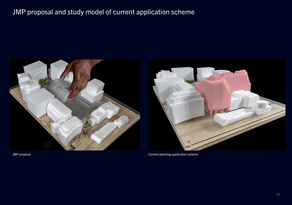 Image showing a comparison of the Acme scheme versus the John McAslan Partnership alternative proposal