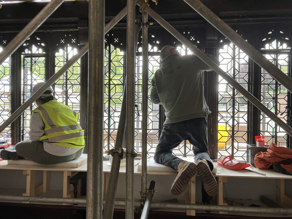 Reinstalling stained glass during the restoration at Wightwick Manor. Photos: Rachael Parry & Lindsey Bucknor